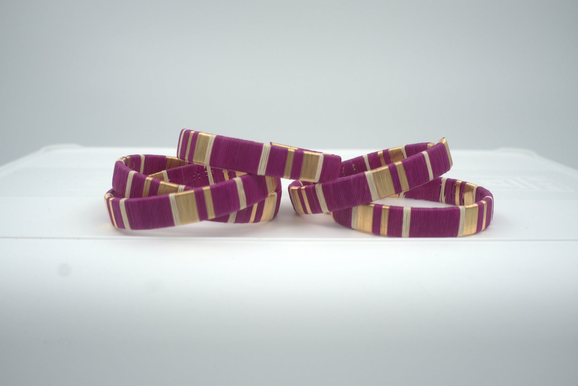 The palm and the technique used to make these bracelets are known by the same name, "werregue." Traditionally, werregue baskets are woven so tightly, they are considered to be water-tight. These bracelets form part of the artisanal heritage of the Wounaan indigenous community from the Chocó region of Colombia. The bracelets are woven by hand using fiber from the werregue palm by the Maachden artisan group led by María Iris Dura Obispo and Luis Fernando Piraza.